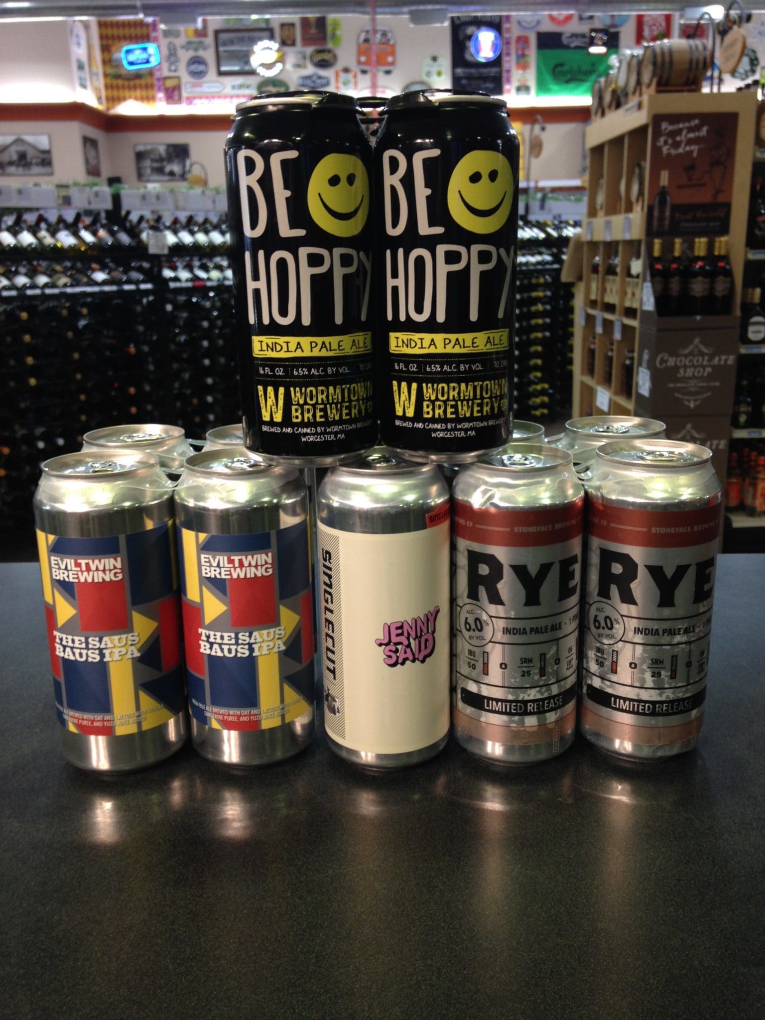 Great beer delivery day here and a plethora of styles! We have the ubiquitous IPA and Double IPA, but we also have barrel-aged sours, a berliner weisse, witbier, a blueberry-peach cobbler cider, pale ale, golden ale and variations on each! Almost every example is local too!