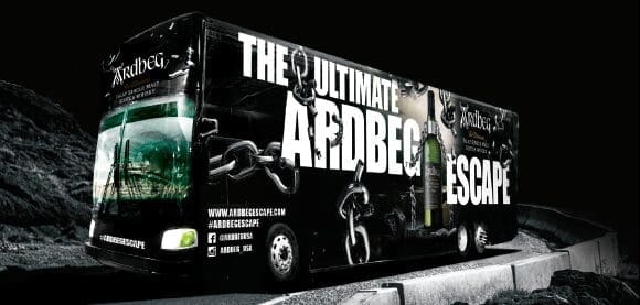 A giant, double-decker bus of course! Don’t worry about what the driver can see through that image filmed windshield – the bus will be parked when you get here anyway. Inside the bus is where the fun is. The Ardbeg ‘sensory experience’ is sure to be unique with both floors of the bus offering hands-on education.