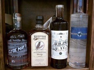 Clyde May Alabama Style Whiskey, Ancho Reyes Chile Liquor, Journeyman Rye and Cold River Blueberry Vodka