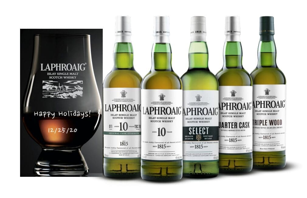 This is much more than just looking at bottles and some sniffing. It is all about gifts! The range of Laphroaig single malts is a great place to start when picking out a scotch gift, but on this day bottle purchases will include a free, personalized Glencairn glass.