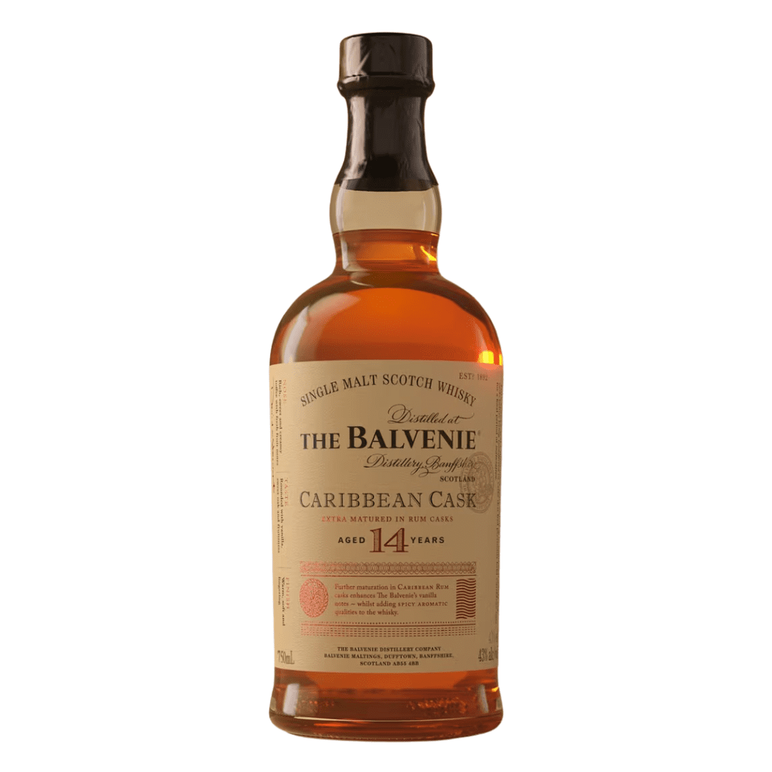 A 14 year old single malt scotch whisky in Caribbean cask from Balvenie.