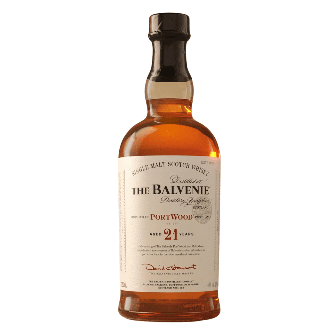 During maturation, the Balvenie PortWood is transferred from a traditional oak whisky cask in which it has been matured for 21 years to an original port cask thereby acquiring character from both casks. the result is a malt with honeyed tones of distinctive and robust character.