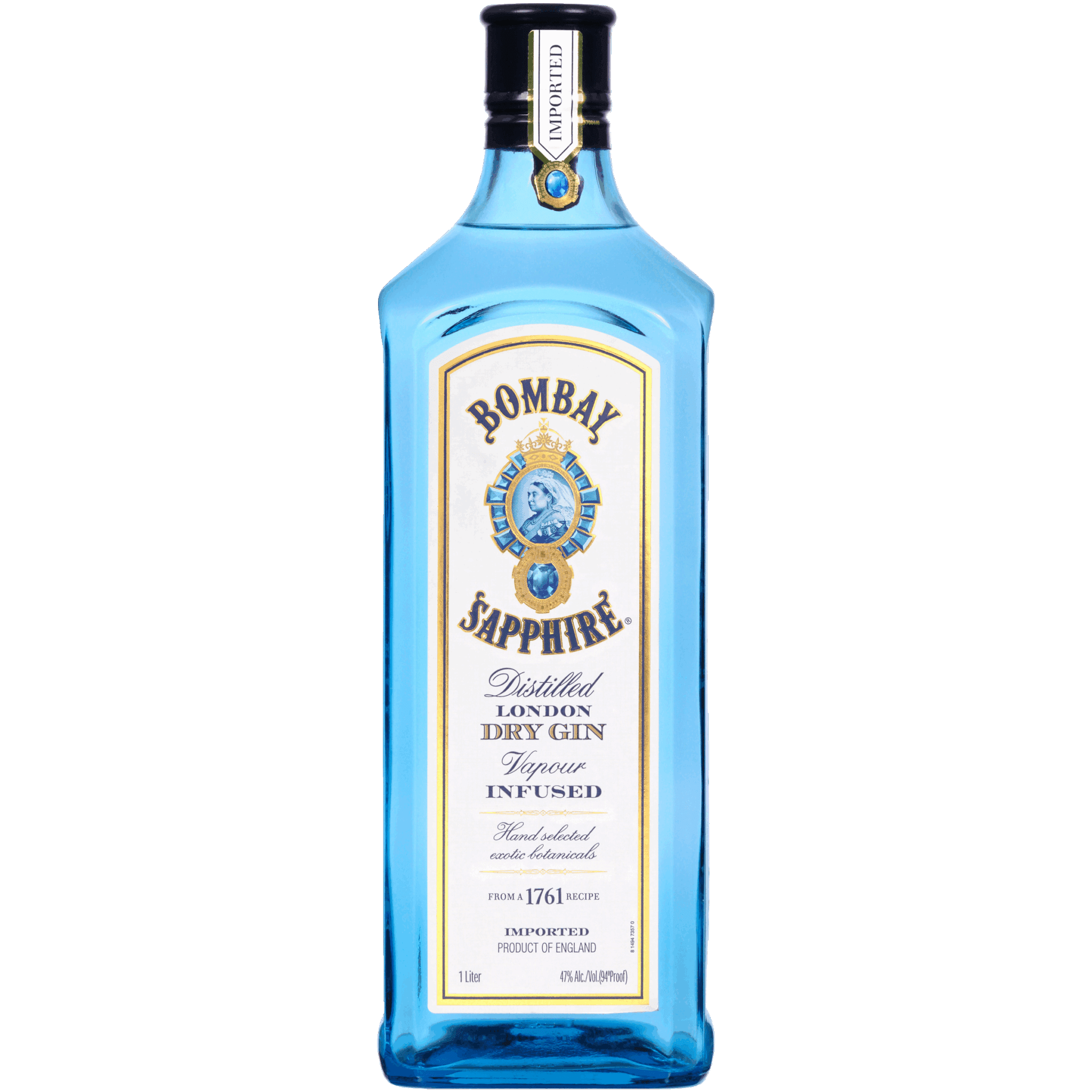 1L – Bombay Sapphire Gin has perfumed juniper, bitter citrus, and brown spice nose; smooth entry; a glycerous, medium-bodied palate; pungent, spicy juniper notes.