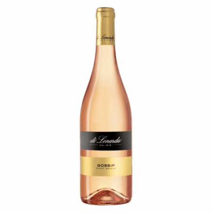 “The “GOSSIP” Pinot Grigio exhibits a beautiful, light copper color with luminescent clarity. The lush aromas include wild strawberry, elderberry, hay and dried roses with hints of dried fruits and almond. A beautiful balance of robust fruit and crisp acidity characterize the complex palate with flavors that mirror the notes found in the wine’s bouquet.” -diLenardo.it
