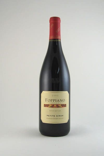 From the Russian River Valley, Foppiano is one of the pioneer producers of Petite Sirah. This extremely dark purple wine openswith a minty and eucalyptus like bouquet in front of some dark berries. On the palate, this medium bodied wine is round, dry, not complex, easy to drink, and displays dusty blackberry flavors. The finish is quite dry, has fine tannins, but is a bit brief. This wine would pair nicely with a burger smothered with sautéed mushrooms, onions, [&] provolone.
