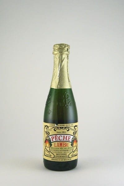 Belgian Peach Fruit Beer. Golden in color; with a nose that fills the room with fresh peaches. Sparkling, crisp and refreshing balance of fruit and acid. Style—Peach Lambic. Color—Golden. Peach Melba, peaches in brandy, pear tarts, salad Nicoise, sorbet, egg rolls, peach cobbler, Waldorf salad, haroses, free-run chicken crepes, Belgian waffles. Serve in Champagne flutes at 45 degrees.