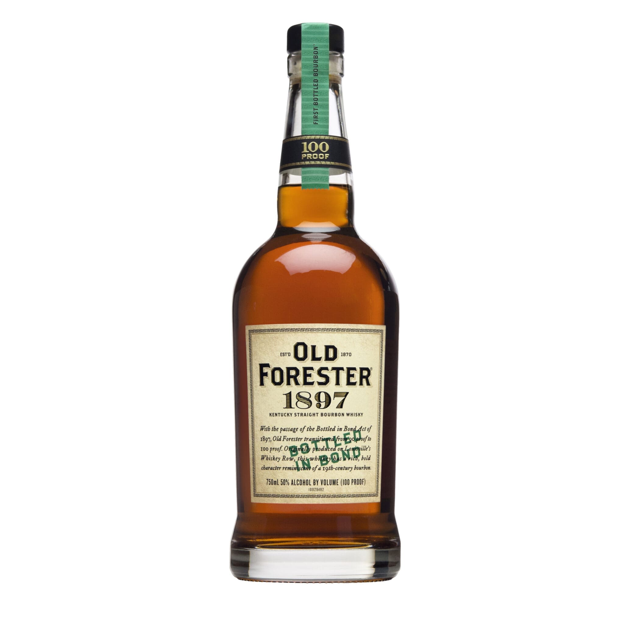 Old Forester 1897 Bottled in Bond is crafted to honor a watershed moment in bourbon history – the U.S. Bottled-in-Bond Act of 1897. This expression follows the Bottled in Bond standards that whisky must be aged in a federally bonded warehouse for at least four years, the product of one distillation season, one distiller and from one distillery and bottled at 100 Proof.
