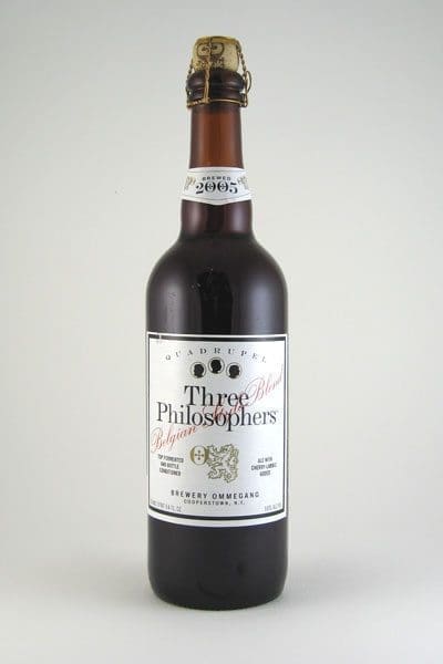 Belgian Style Ale Blended with Raspberry Lambic, Cork Finish. The term Quadrupel signifies something extraordinary, even by Belgian brewing standards. They are usually strong, malty, and, like a fine wine, pack in flavors so dense and complex that they mature with cellar aging. Try Three Philosophers as a delightful accompaniment for roasted meats, rich cheeses, desserts, and for after dinner sipping as with a fine port.