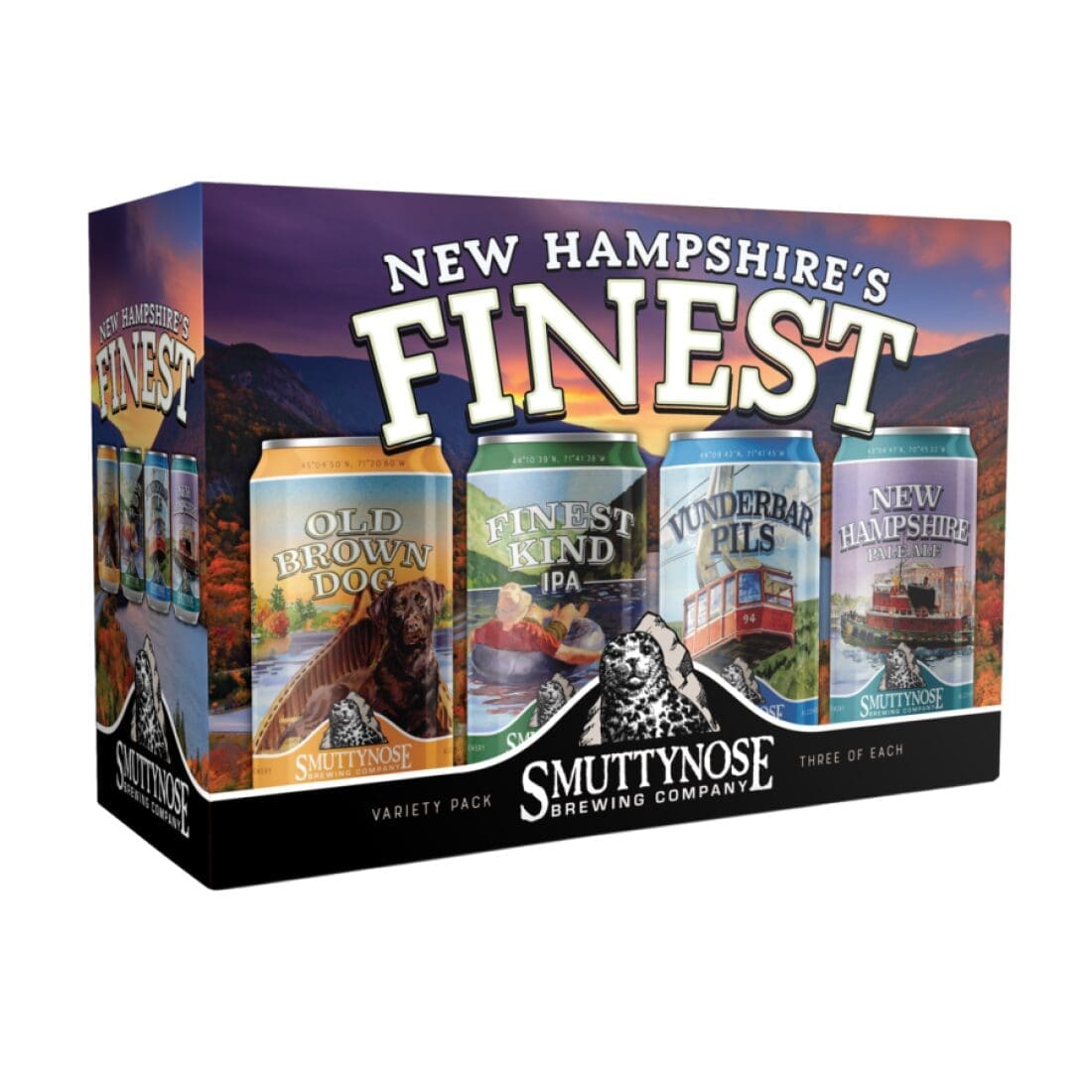 Smuttynose New Hampshire’s Finest variety pack includes; Old Brown Dog, Finest Kinds IPA, Vunderbar Pils, and New Hampshire Pale Ale.
