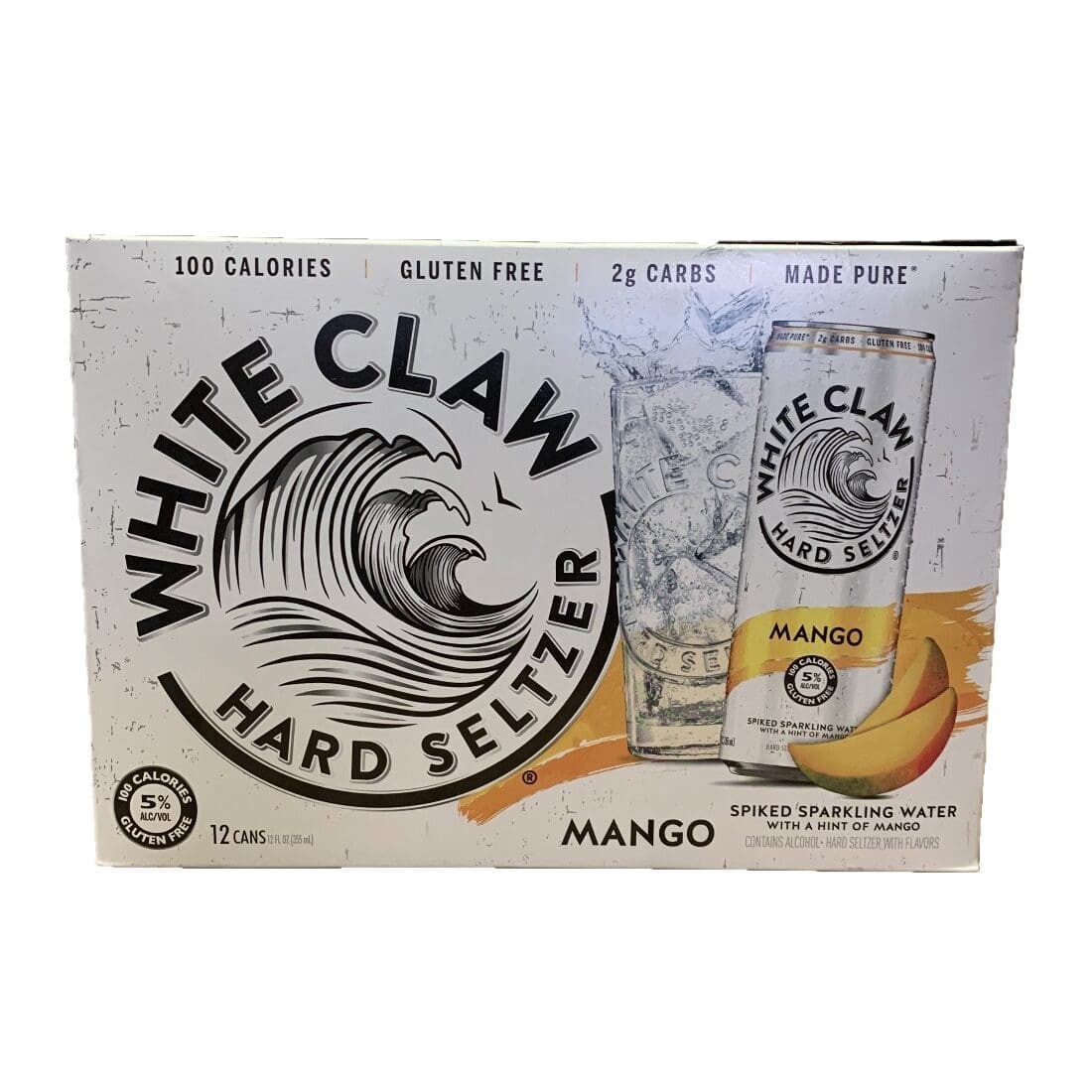 White Claw Mango 12 Pack. This seltzer comes in 12oz cans and has 5%ABV, 100 calories, 2 grams carbs, and natural flavors.