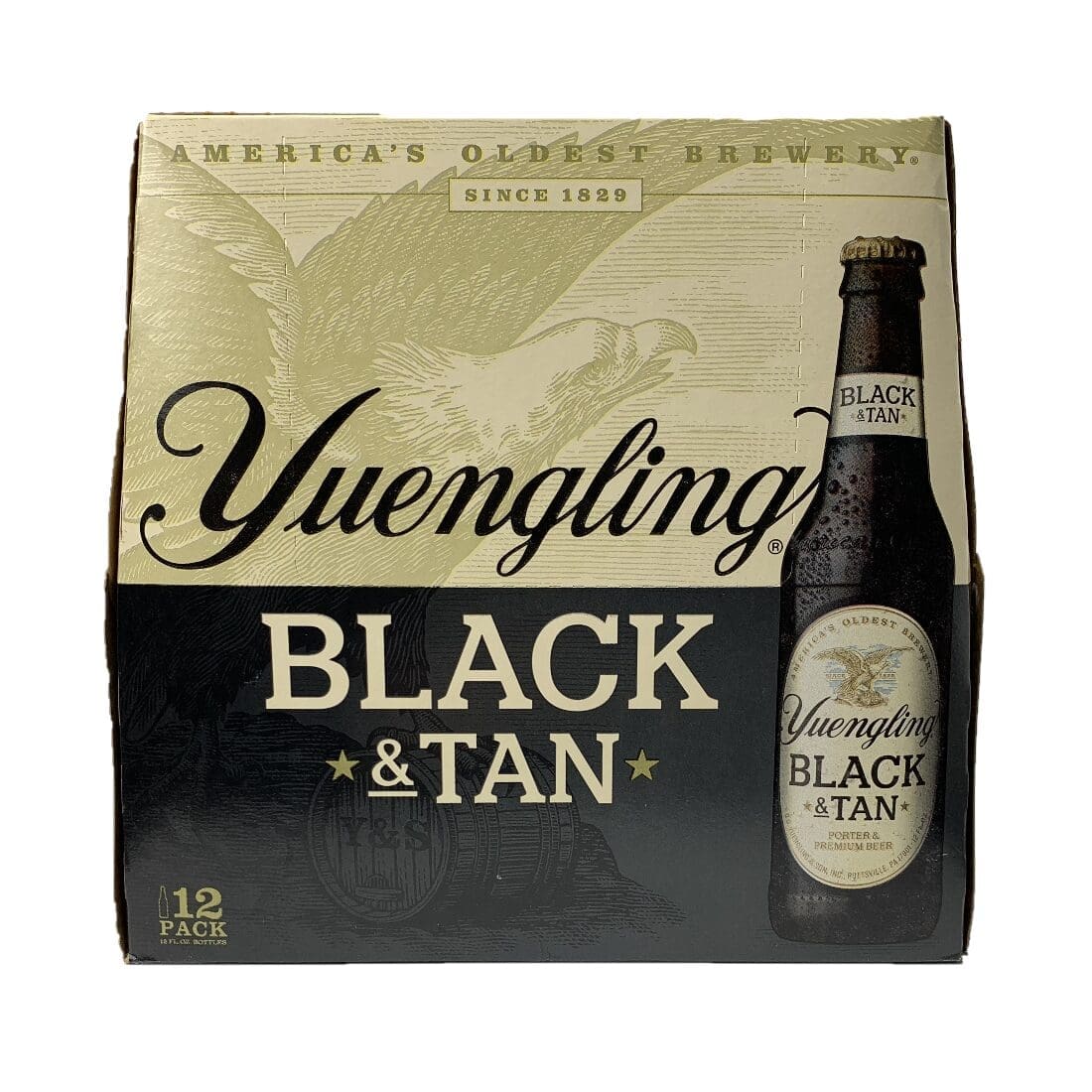 “Black [&] Tan combines our popular Dark Brewed Porter with Premium Beer. Rich and dark in color, it has a well-balanced flavor, with hints of caramel and coffee from the dark roasted malt that finishes smooth and satisfying.”
