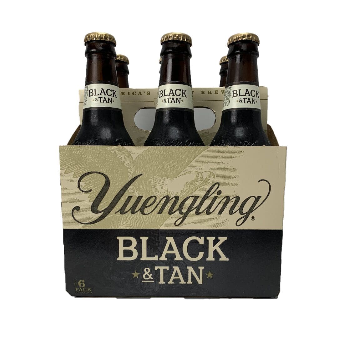 “Black [&] Tan combines our popular Dark Brewed Porter with Premium Beer. Rich and dark in color, it has a well-balanced flavor, with hints of caramel and coffee from the dark roasted malt that finishes smooth and satisfying.”
