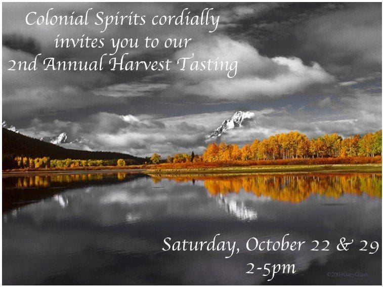 Join us for our 2nd Annual Harvest Tasting on Saturday, October 22 & 29. As usual there will be over 50 bottles of wine open at each tasting ranging from the light and ever so fun sparkling wines to the dark and robust, full-bodied reds. Bring family and friends, as long as they’re 21, and come have fun with us. Finger-food will be available!!